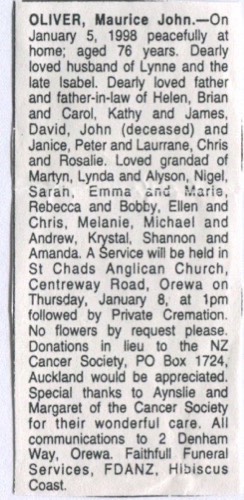 Oliver, Maurice John 1921-1998 - Headstone at Kerikeri