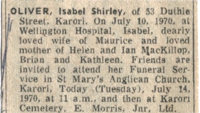 McCaul, Isabel Shirley at Seatoun Monro St House