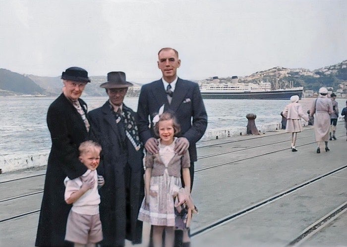 McCaul, Enid & McCaul, Athol & Crichton, Albert (Scotty) with Brian & Helen Oliver - Jan 1955
