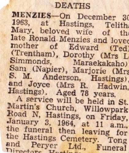 Carrel, Telitha Mary 1885-1963 - Death Notice