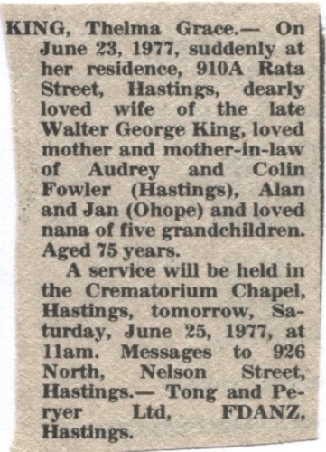Carrel, Thelma Grace 1902-1977 - Death Notice