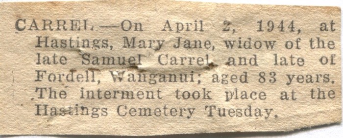 Woolford, Mary Jane 1860-1944 - Death Notice