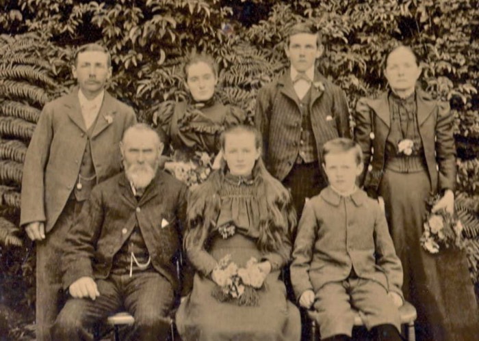 Oliver, Francis 1840-1926 & Langman, Elizabeth 1841-1916 Bk L-R Frank Alice Arthur Elizabeth Front L-R Francis Mary-May Bert