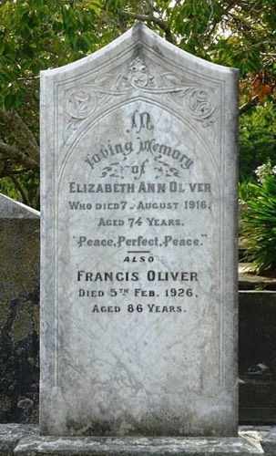 Oliver, Francis 1840-1926 & Langman, Elizabeth Ann 1841-1916 - Headstone ex Graeme Kenyon
