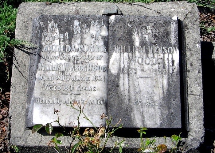 Oliver, Matilda 1836-1921 and Wood, William Henson 1863-1927 - Closeup of Headstone - photo Feb 2009
