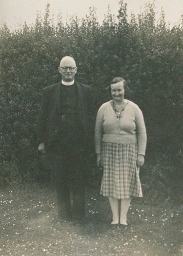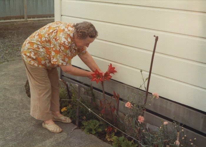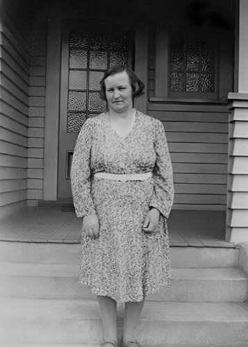 Kendall, Doris 1908-1995 on front steps of Vicarage at Ngaruawahia