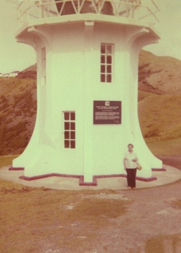 Kendall, Doris 1908-1995 - at Cape Reinga Lighthouse 1981. Doris insisted that daughter Rachel took this one to prove that she got there!