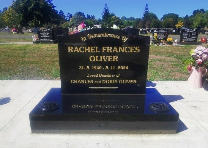 Oliver, Rachel Frances 1940-2024 - Headstone installed February 2025 at Aramoho Cemetery Wanganui