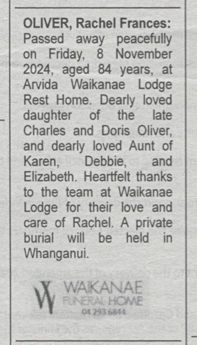 Oliver, Rachel 1940-2024 - Death Notice in The Post 13 Nov 2024