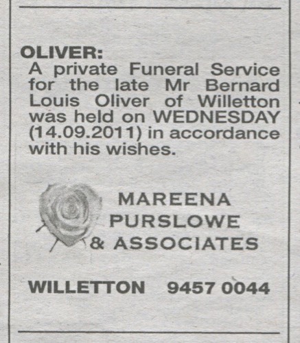 Oliver, Bernard 1943-2011 - Funeral Notice