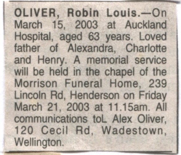 Oliver, Harold 1909-1971 and Oliver, Robin 1940-2003