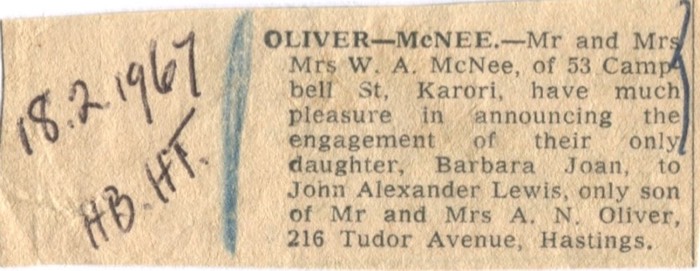 McNee, Barbara Joan and Oliver John Alexander Louis 1943-2020 - Engagement Notice