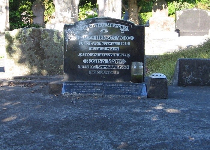 Wood, James Henson 1877-1918 and Leech, Rosina Mary ca1876-1956 - Headstone in Feb 2009