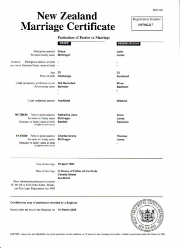 Jones, John 1874-1955 and McGregor, Grace 1882-1947 - Wedding Cert