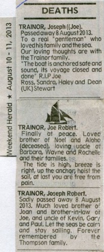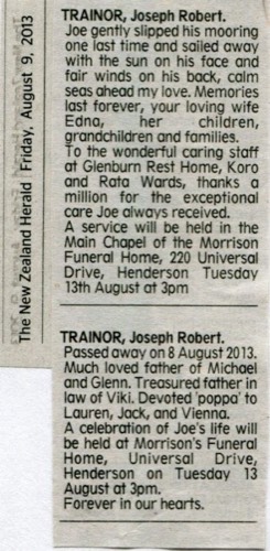Trainor, Joseph Robert d2013 Death Notice 9 Aug 2013