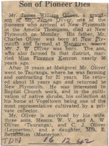 Oliver, James William 1870-1942 - Newspaper Obituary