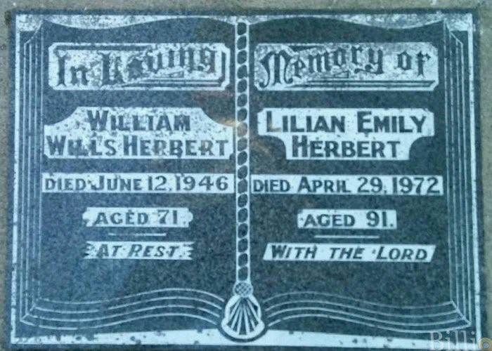 Herbert, William Wills 1875-1946 & Oliver, Lillian Emily 1880-1972 - Headstone