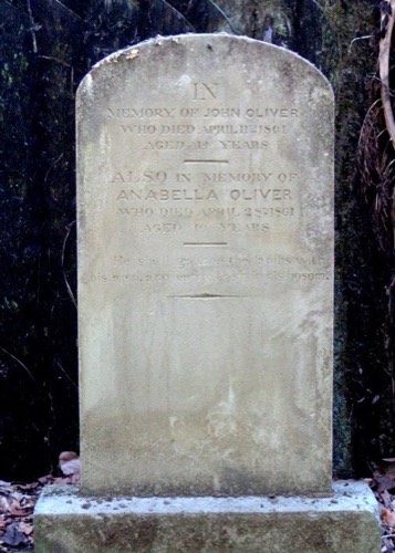 Oliver, John 1847-1861 and Oliver, Annabella 1845-1861 - Headstone - children of Samuel and Elizabeth (nee Baker) Oliver - photo Feb 2009