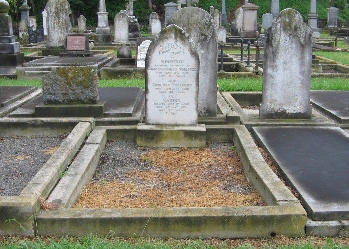 Woolford, Winnifred 1886-1907 and Woolford, Ambrose 1841-1922 and Fisher, Martha A 1842-1931 - Grave Heads Road Cemetery - photo Jan 2009