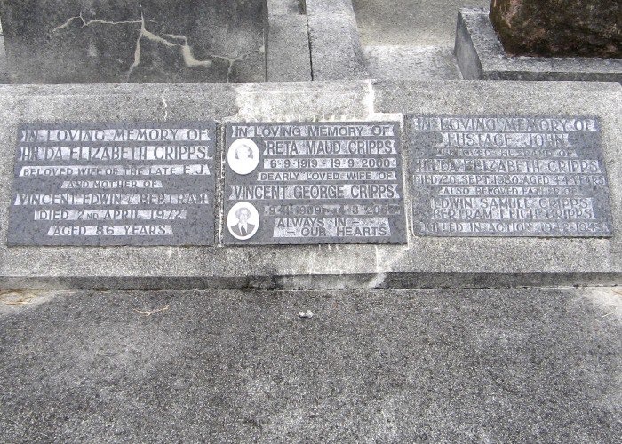 Gamby, Hilda Elizabeth 1886-1972 and Oliver, Reta 1919-2000 and Cripps, Vincent 1909-2002 and Cripps, Eustace 1887-1930 - Grave in Aramoho Cemetery, Wanganui - photo Jan 2009