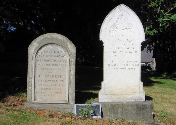 Julian, Richard 1793-1871 and White, Elizabeth 1792-1873 - Headstone on left in Feb 2009. Right is grandmother Caroline Bailey