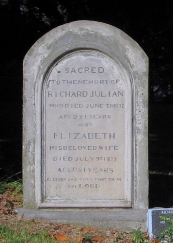Julian, Richard 1793-1871 and White, Elizabeth 1792-1873 - Headstone on left in Feb 2009