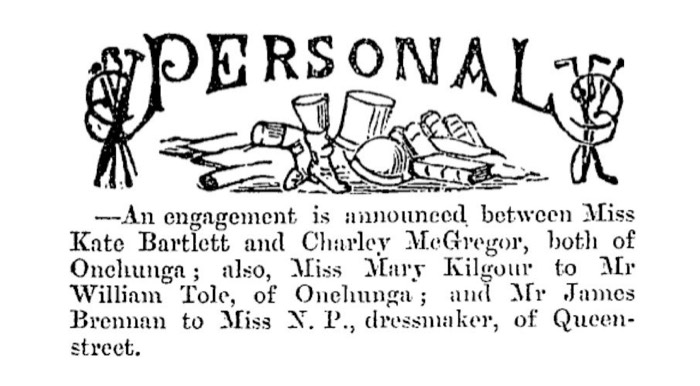 McGregor, Charles 1856-1943 and Bartlett, Catherine Jane 1860-1913 - Engagement Notice The Observer 10 Dec 1881