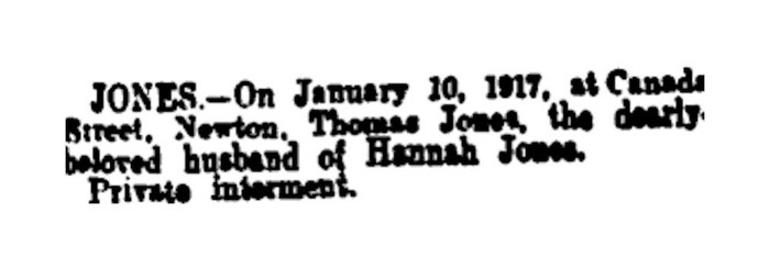 Jones, Thomas 1839-1917 - Death Notice NZ Herald 12 Jan 1917