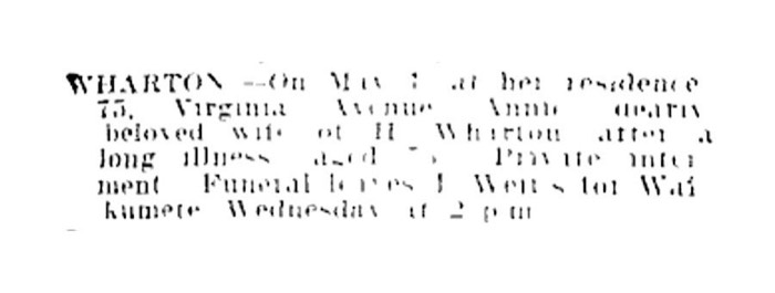 Jones, Thomas and Sammels, Hannah and Wharton, Lillie and Wharton, Henry and Jones, Annie 1869-1923 - Burial Page