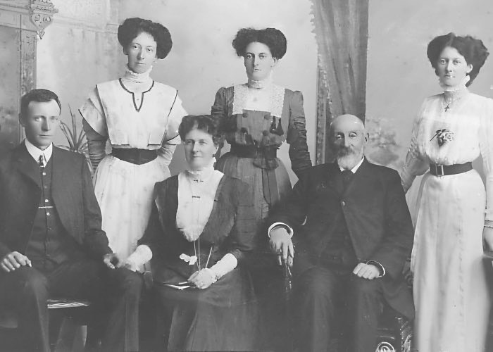 Kelly, L-R Talitha, James, Alexina, Mary Carroll and Olive taken circa 1900 in Hawera