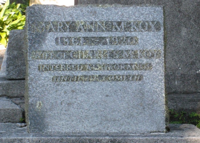 Fisher, Mary Ann [McKoy] d1920 - taken Feb 2009