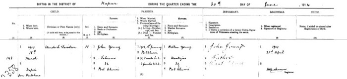 Young, Murdoch Davidson 1914-2000 Birth