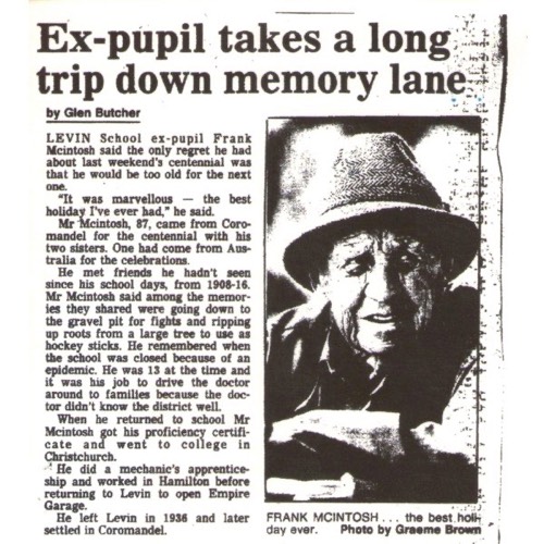 Macintosh, Frank 1903-1993 - husband of Minnie Jane Fraser - Newspaper 16 Jan 2020