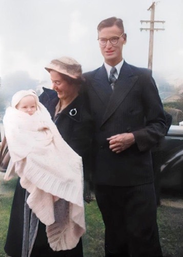McCaul, Jean Ngaire 1915-1963 & McCaul, Gilbert Graeme 1923-2003 with baby Kathleen Oliver Dec 1954