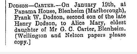 Dodson, FW 1864-1931 - Wedding ex Marlborough Express 21 Jan 189