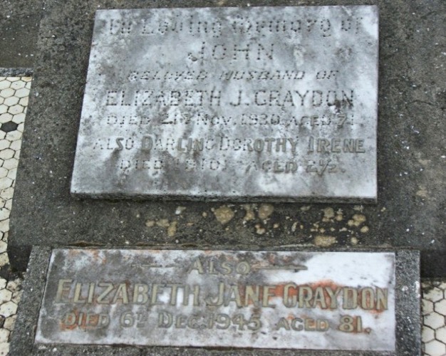 Graydon, John 1860-1930 and Jones, Elizabeth Jane 1866-1945 and Graydon, Dorothy I d1910 - Headstone1