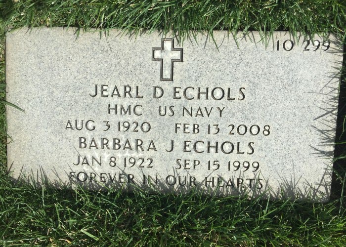 Oliver, Barbara Jean 1922-1999 and Echols, Jearl Dean 1920-2008 - Headstone ex R Rogers