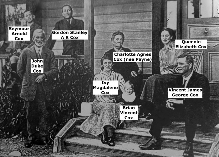 Cox, John Duke (1856 - 1928) and Payne, Charlotte Agnes and family - Labels