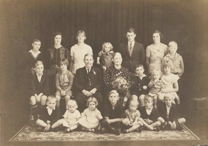 Walker, Robert ca1852-1937 and Kendall, Fanny 1866-1951 - with their Grandchildren - Golden Wedding 19 April 1936 FULL