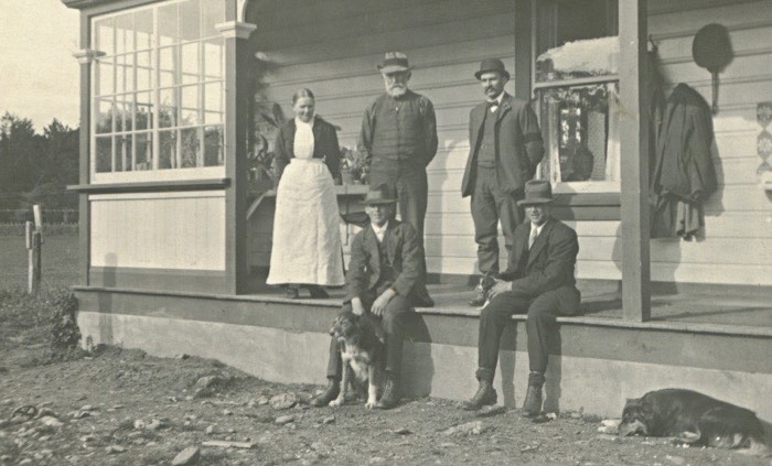 Friedrich Family on deck - REAR Kendall, Ellen (Nell) 1872-1959 and Gustav (Gus) 1860-1944, Fred (Gus' bro). FRONT - Percy 1899-1982 and Richard (Dick) 1905-1931 FULL
