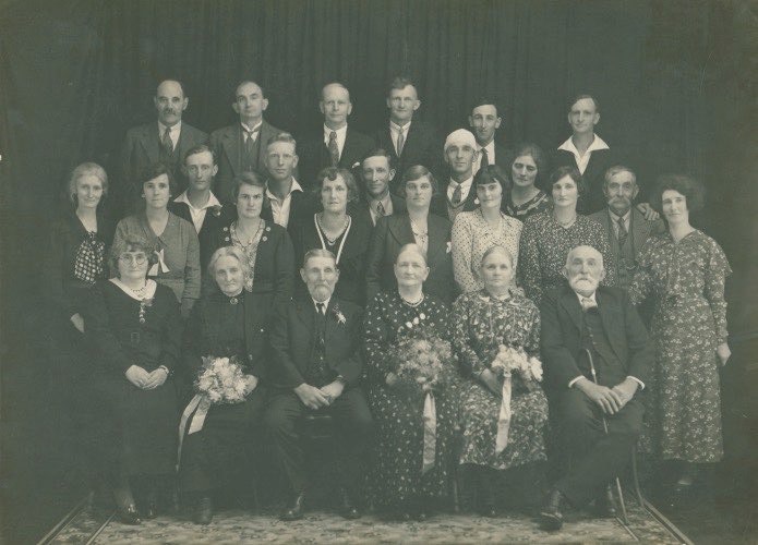 Walker, Robert ca1852-1937 and Kendall, Fanny 1866-1951 Golden Wedding 19 April 1936 (Centre), then - Kendall, Ellen (Nell) 1872-1959 and Friedrich, Gustav A 1860-1944
