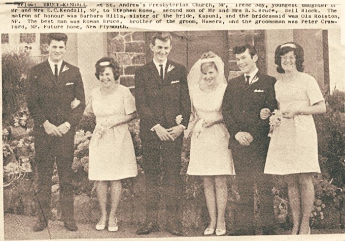 Bruce, Rowan and Kendall, Barbara Ann 1945-2022 and Bruce, Stephen Ross (b1948) (Groom) and Kendall, Irene Joy (b1949) (Bride) and Bruce, Stephen Ross (b1948) and Peter Crawford and Olg Rolston - Wedding 22 Jul 1967 - Photo in Newspaper