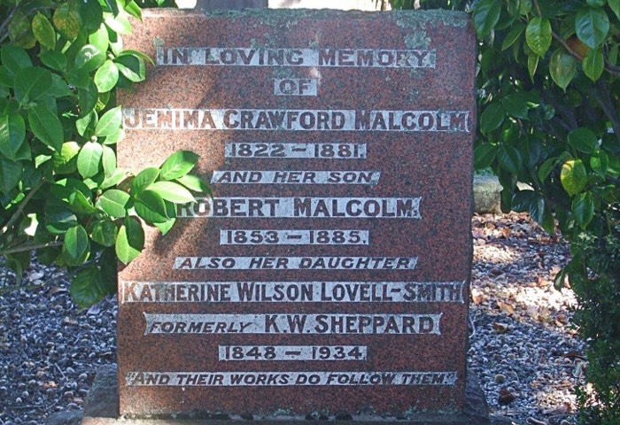 Souter, Jemima 1822-1881 and Malcolm, Robert 1853-1885 and Malcolm Katherine 1848-1934 - headstone_SQ
