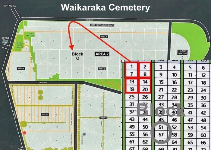 Bartlett - Plan Waikaraka Cemetery and Area O Plots