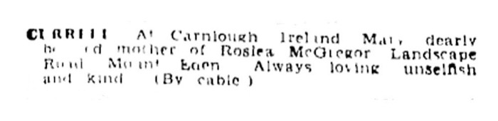 Currell - Roslea mother Mary - Death Notice
