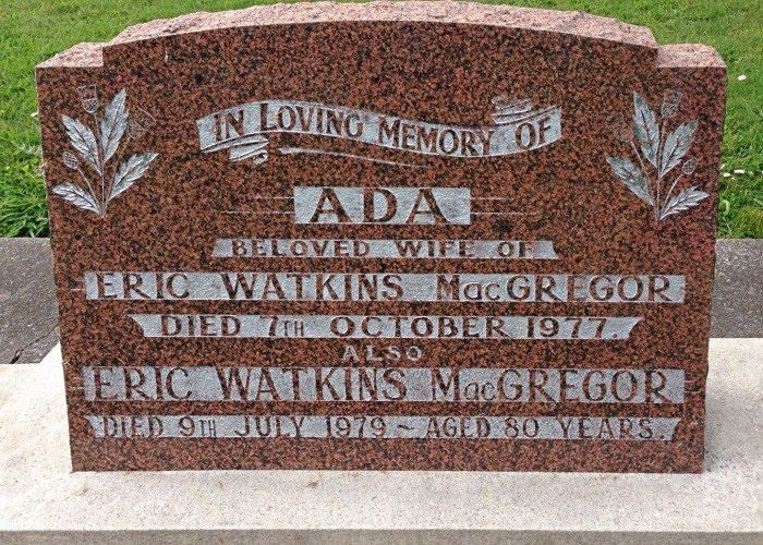 McGregor, Eric W 1898-1979 and Ramsbottom, Ada 1901-1977 - headstone